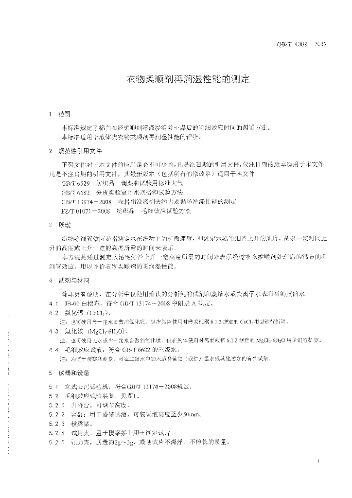 QB/T 4309-2012 衣物柔顺剂再润湿性能的测定