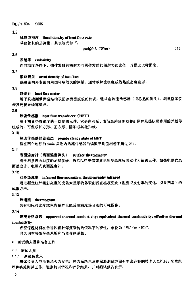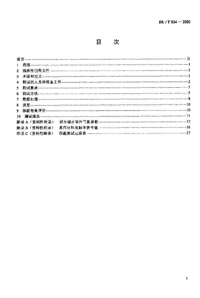 DL/T 934-2005 火力发电厂保温工程热态考核测试与评价规程