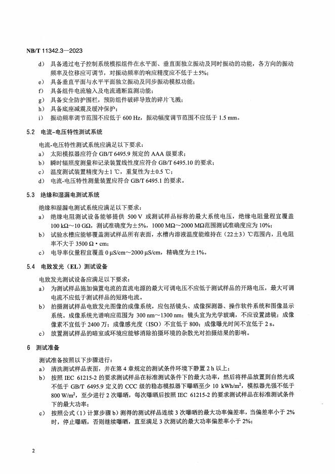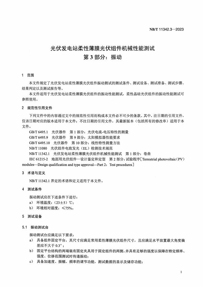 NB/T 11342.3-2023 光伏发电站柔性薄膜光伏组件机械性能测试 第3部分:振动