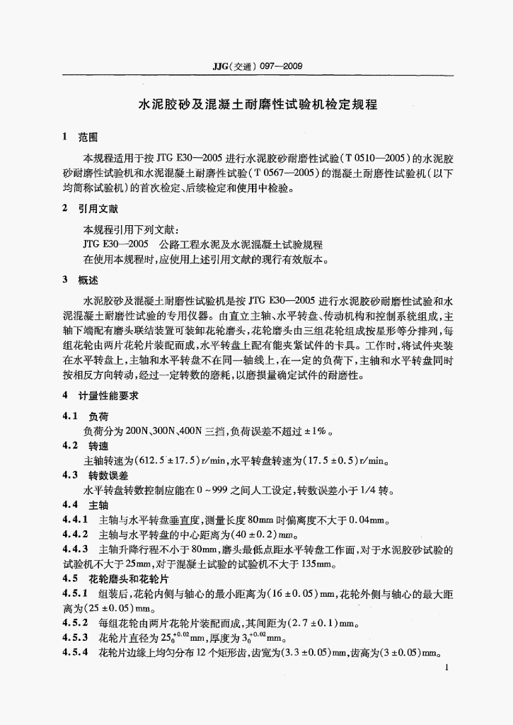 JJG(交通)097-2009 水泥胶砂及混凝土耐磨性试验机检定规程