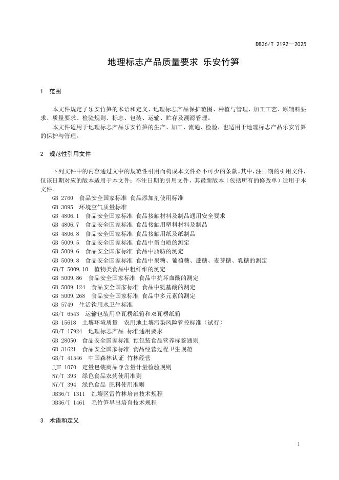 DB36/T 2192-2025 地理标志产品质量要求 乐安竹笋