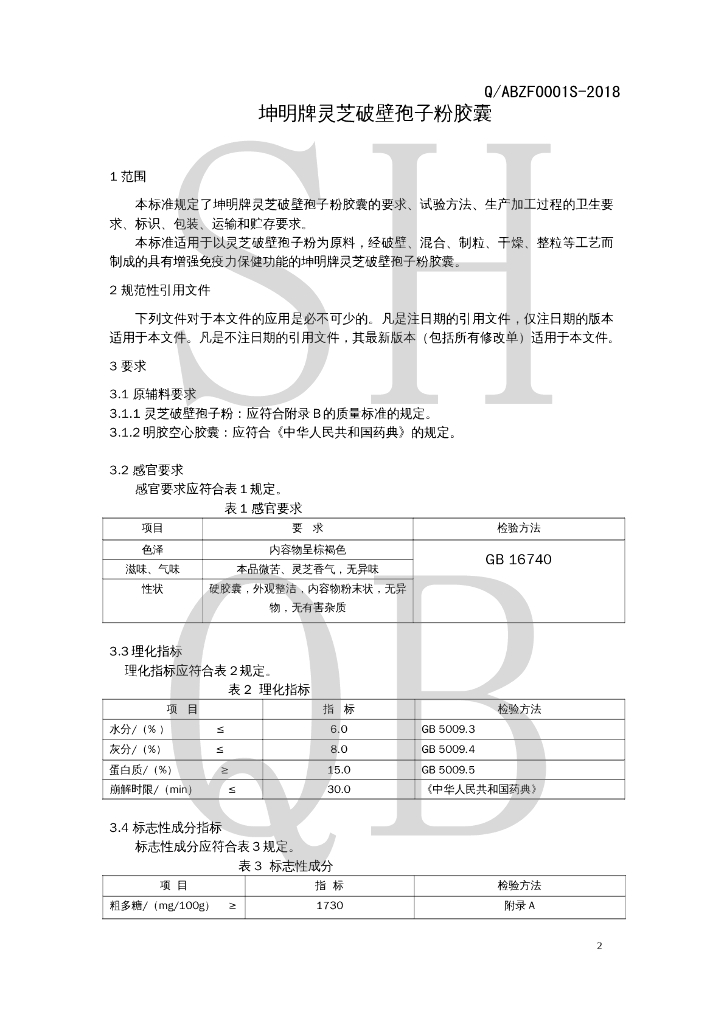 Q/ABZF 0001S-2018 坤明牌灵芝破壁孢子粉胶囊