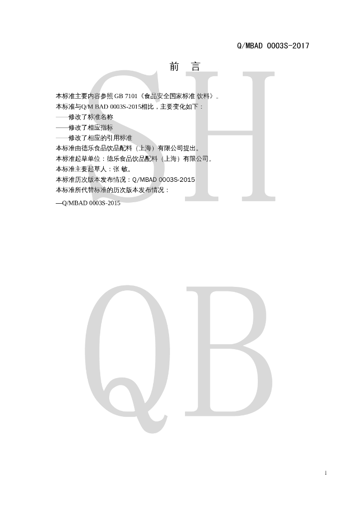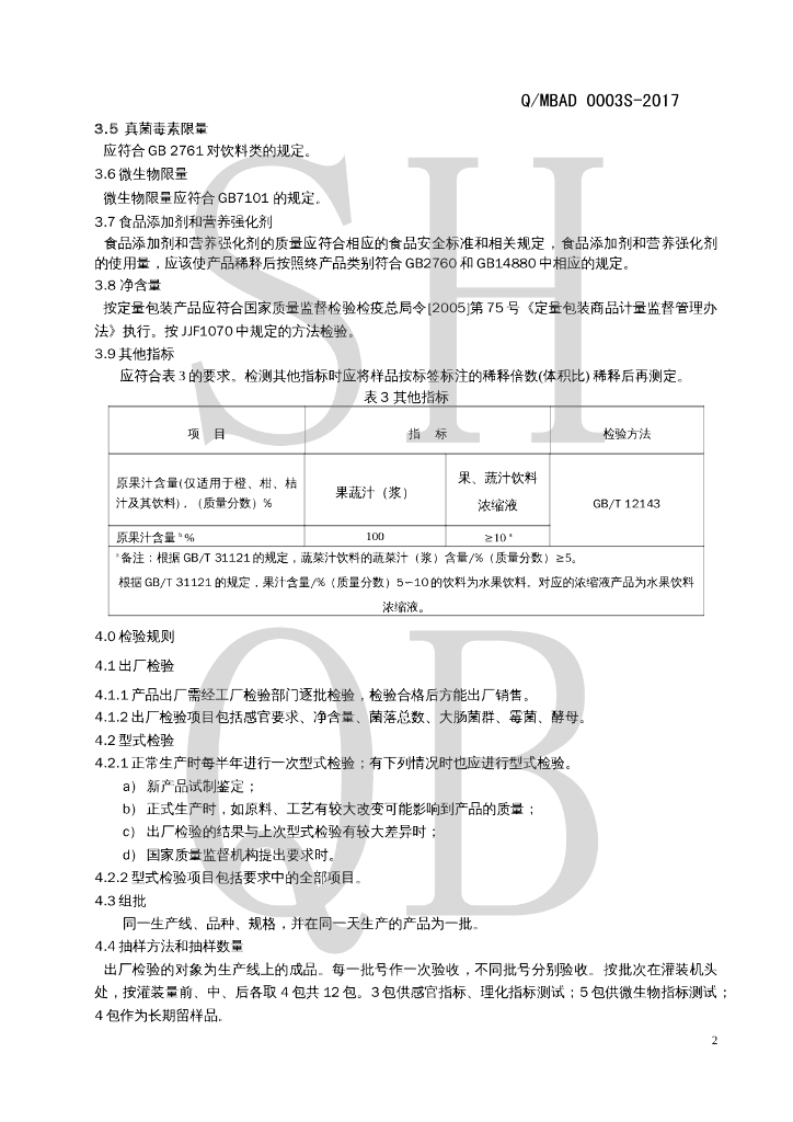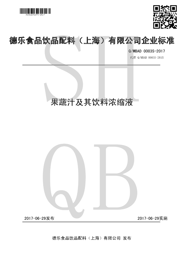 Q/MBAD 0003S-2017 果蔬汁及果蔬汁饮料浓缩液