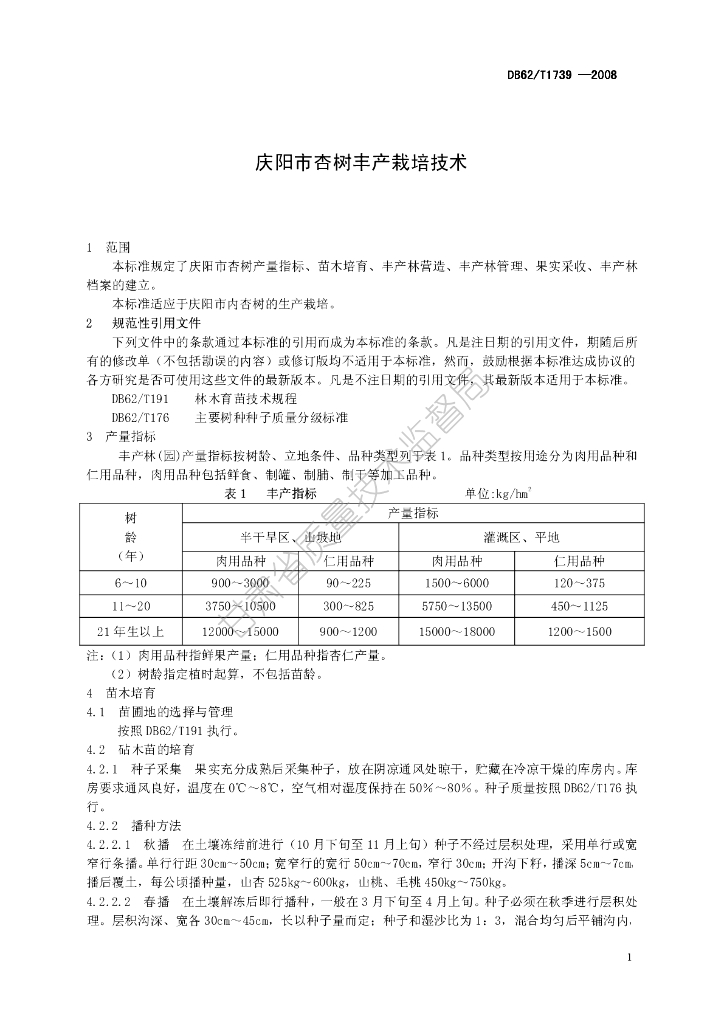 DB62/T 1739-2008 庆阳市杏树丰产栽培技术
