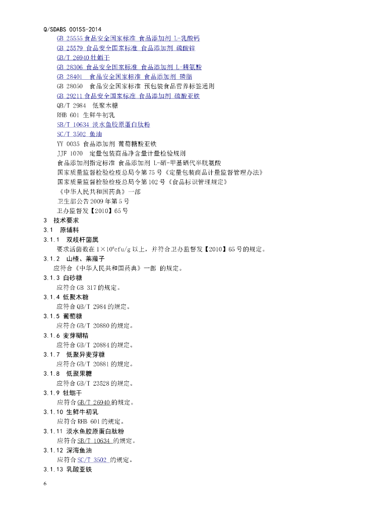 Q/SDABS 0015S-2014 山东奥博森医药科技有限公司 双歧杆菌高钙粉(固体饮料)