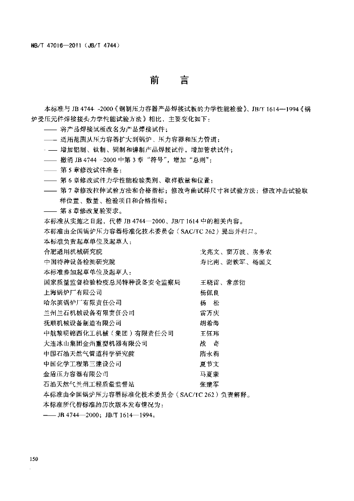 NB/T 47016-2011 (JBT 4744)承压设备产品焊接试件的力学性能