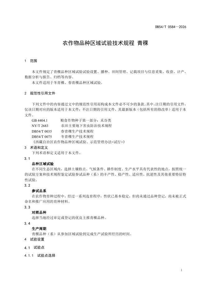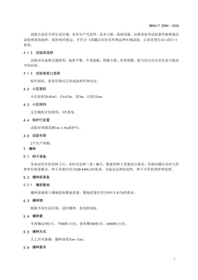 DB54/T 0584-2026 农作物品种区域试验技术规程 青稞