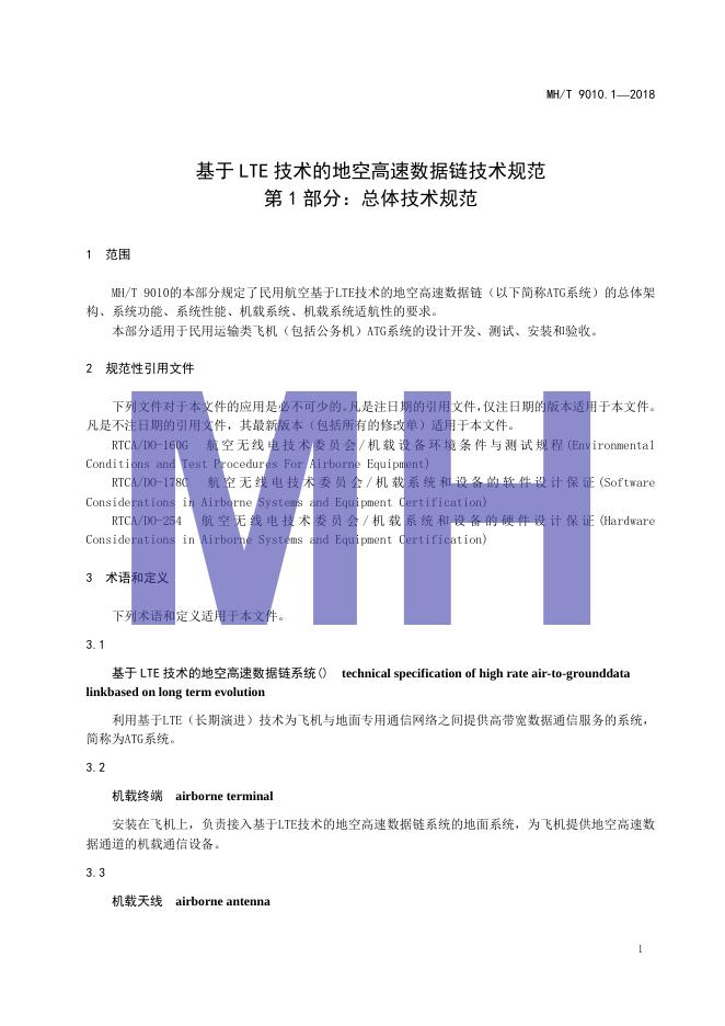 MH/T 9010.1-2018 基于LET技术的地空高速数据链技术规范 第1部分:总体技术规范