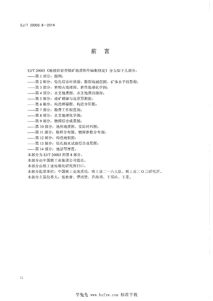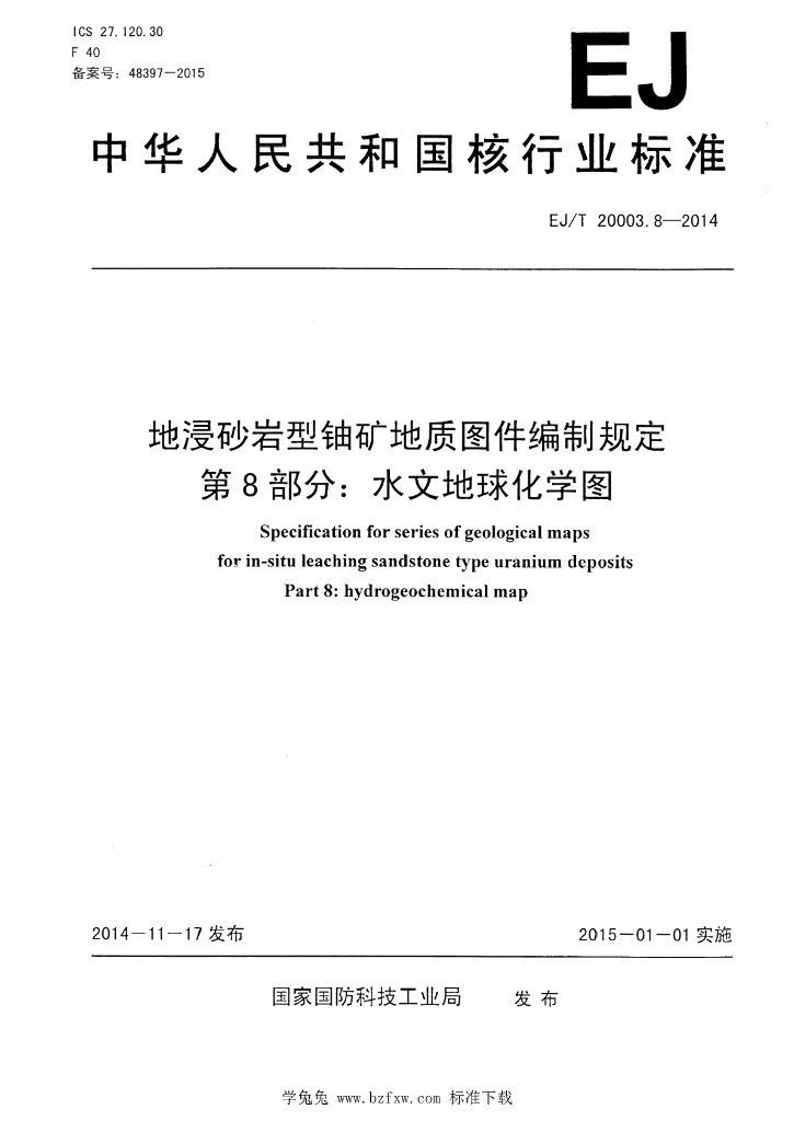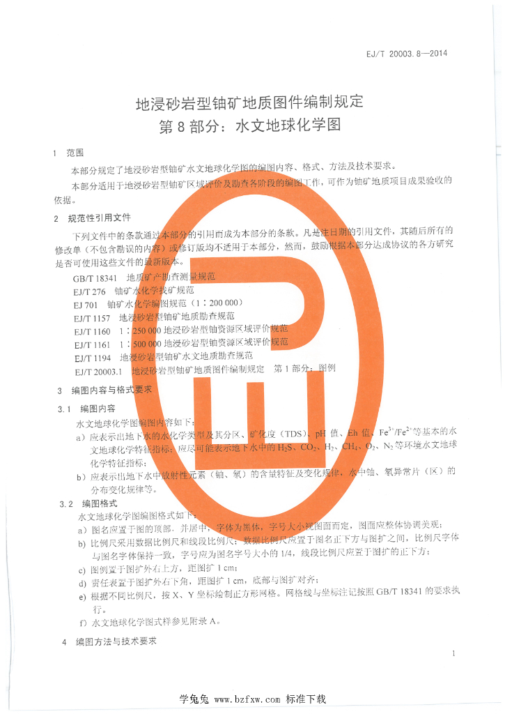 EJ/T 20003.8-2014 地浸砂岩型铀矿地质图件编制规定 第8部分:水文地球化学图
