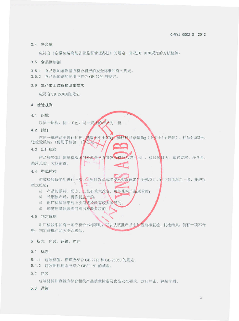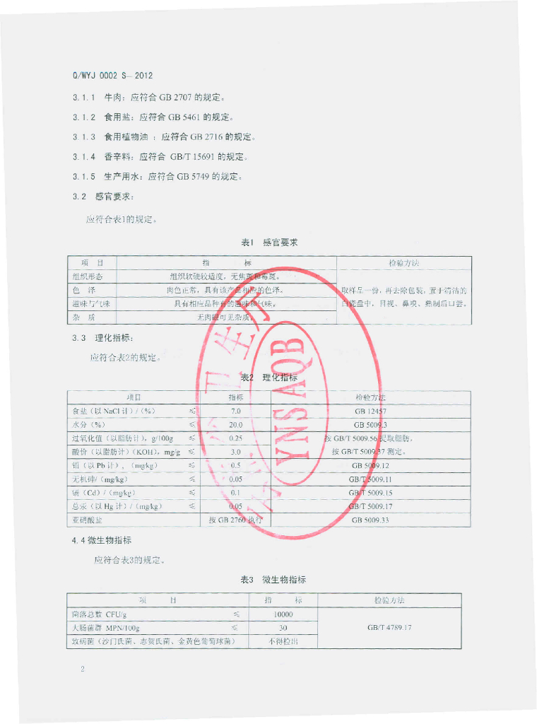Q/WYJ 0002S-2012 伊氏家风味牛肉