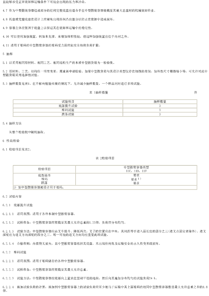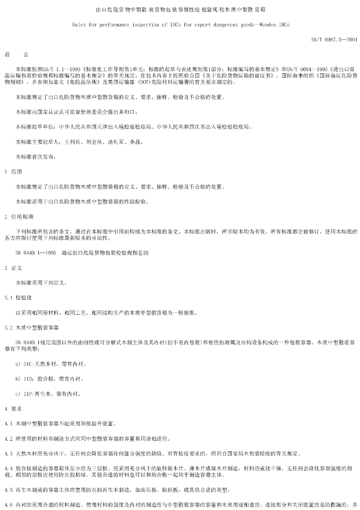 SN/T 0987.5-2001 出口危险货物中型散装货物包装容器 性能检验规程 木质中型散货箱
