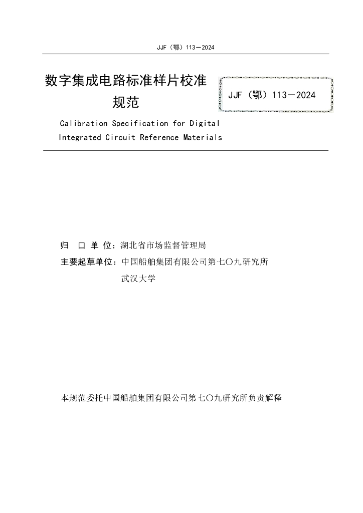 JJF(鄂)113-2024 数字集成电路标准样片校准规范
