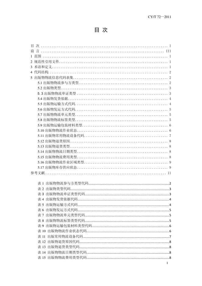 CY/T 72-2011 出版物物流信息代码集