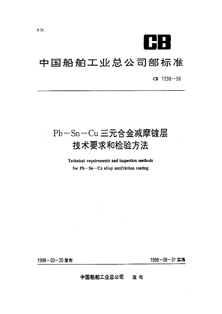 CB 1298-1998 三元合金减摩镀层技术要求和检验方法