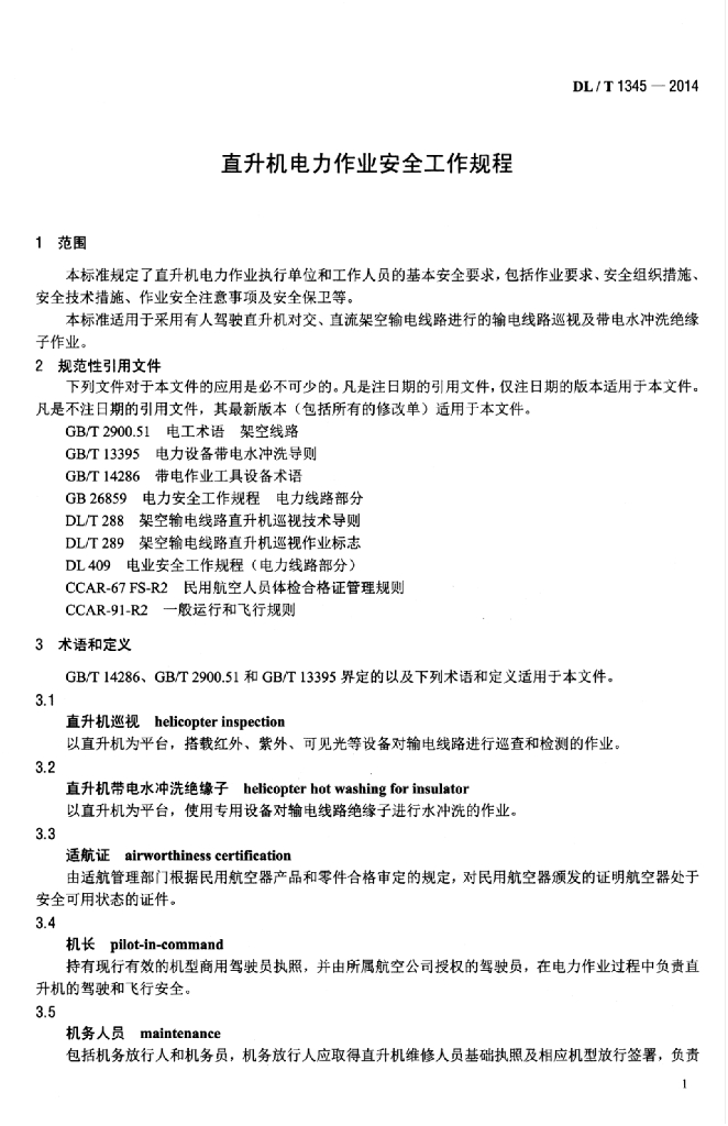 DL/T 1345-2014 直升机电力作业安全工作规程