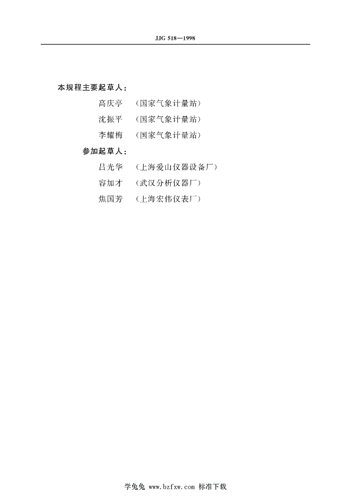 高庆亭(国家气象计量站)、沈振平(国家气象计量站)、李耀梅(国家气象计量站)、吕光华(上海爱山仪器设备厂)、容加才(武汉分析仪器厂)、焦国芳(上海宏伟仪表厂)