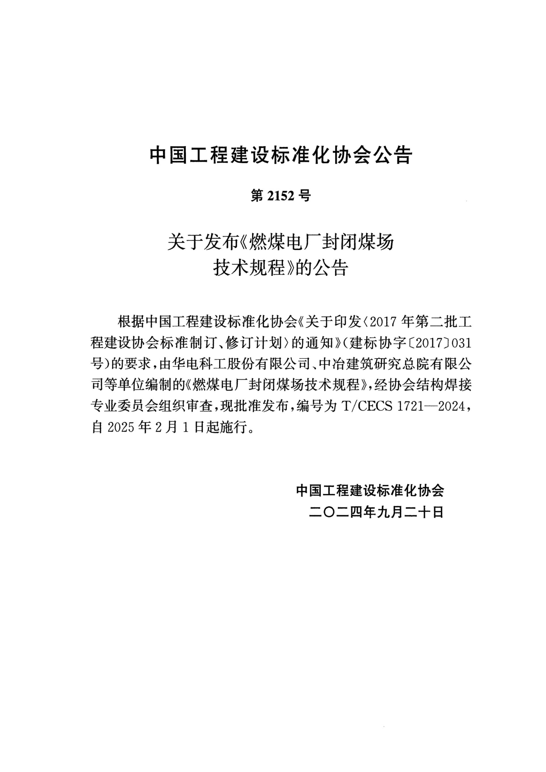 T/CECS 1721-2024 燃煤电厂封闭煤场技术规程