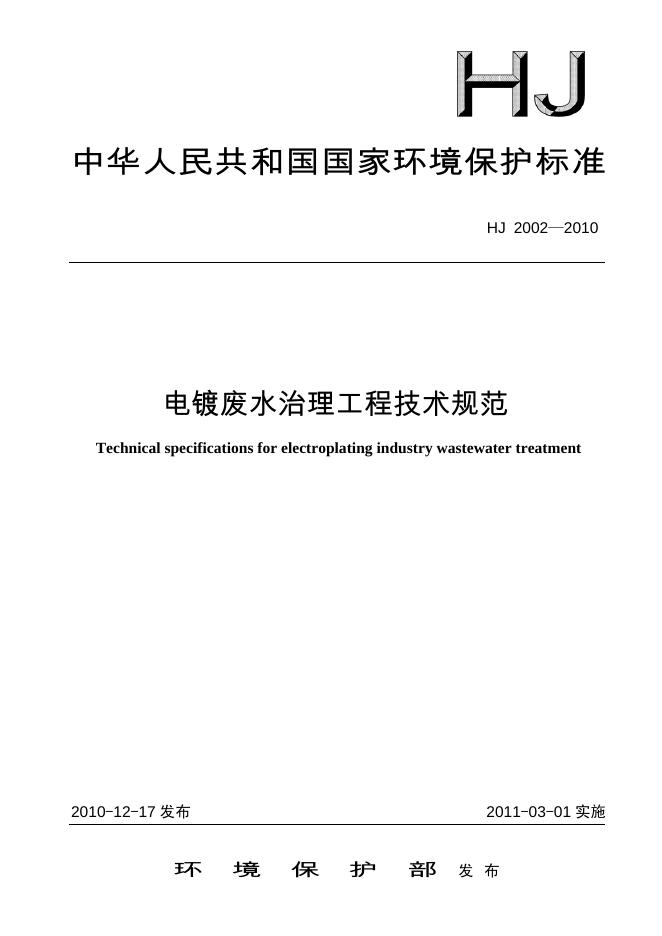 HJ 2002-2010 电镀废水治理工程技术规范