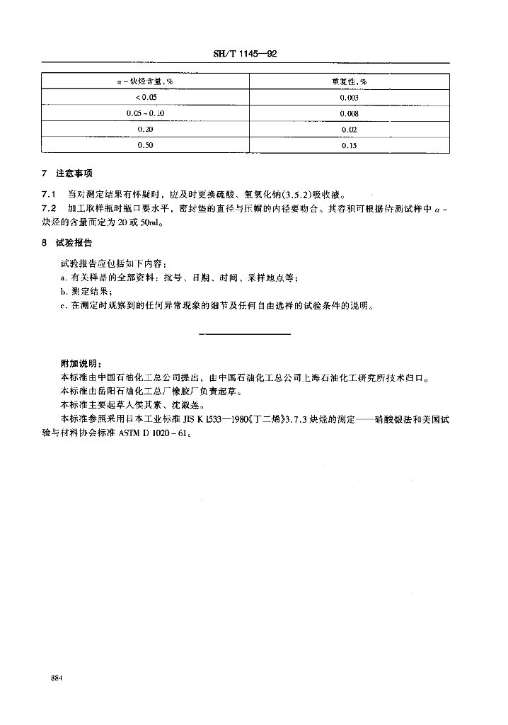 SH/T 1145-1992 工业用裂散碳四a-炔烃含量的测定 硝酸银法