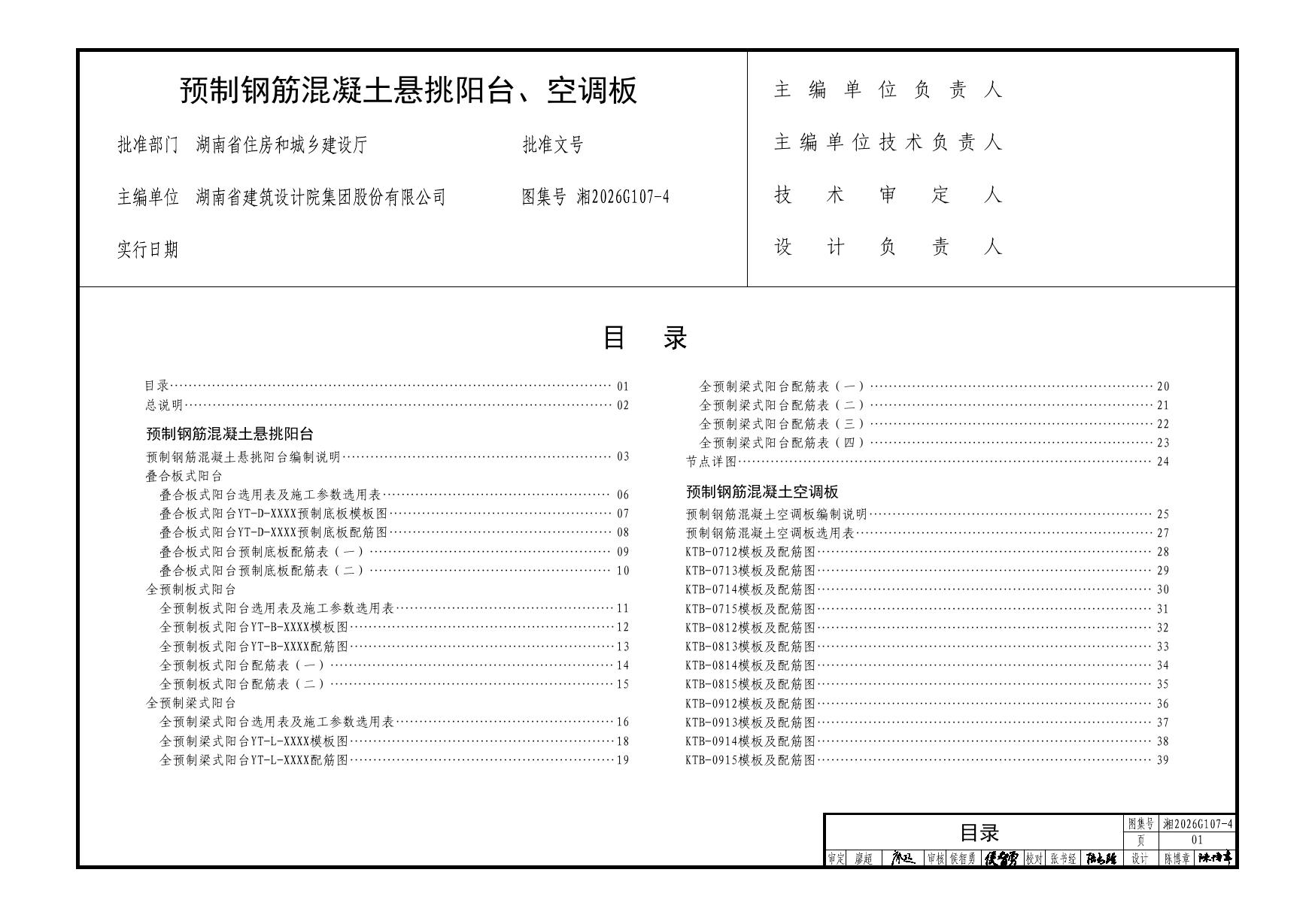 湘2026G107-4 预制钢筋混凝土悬挑阳台、空调板图集