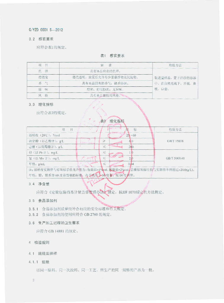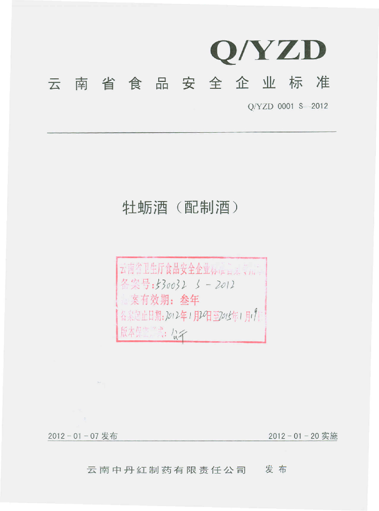 Q/YZD 0001S-2012 配制酒