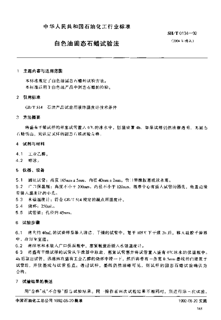 SH/T 0134-1992 白色石油固态石蜡试验法