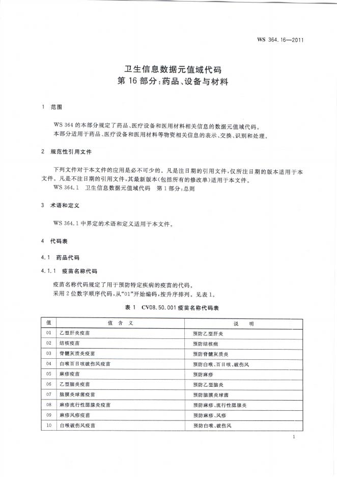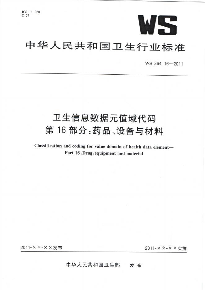 WS 364.16-2011 卫生信息数据元值域代码 第16部分:药品、设备与材料