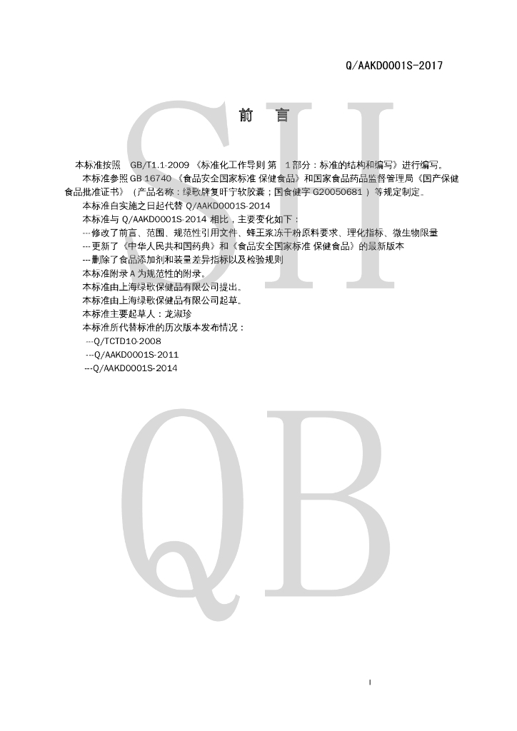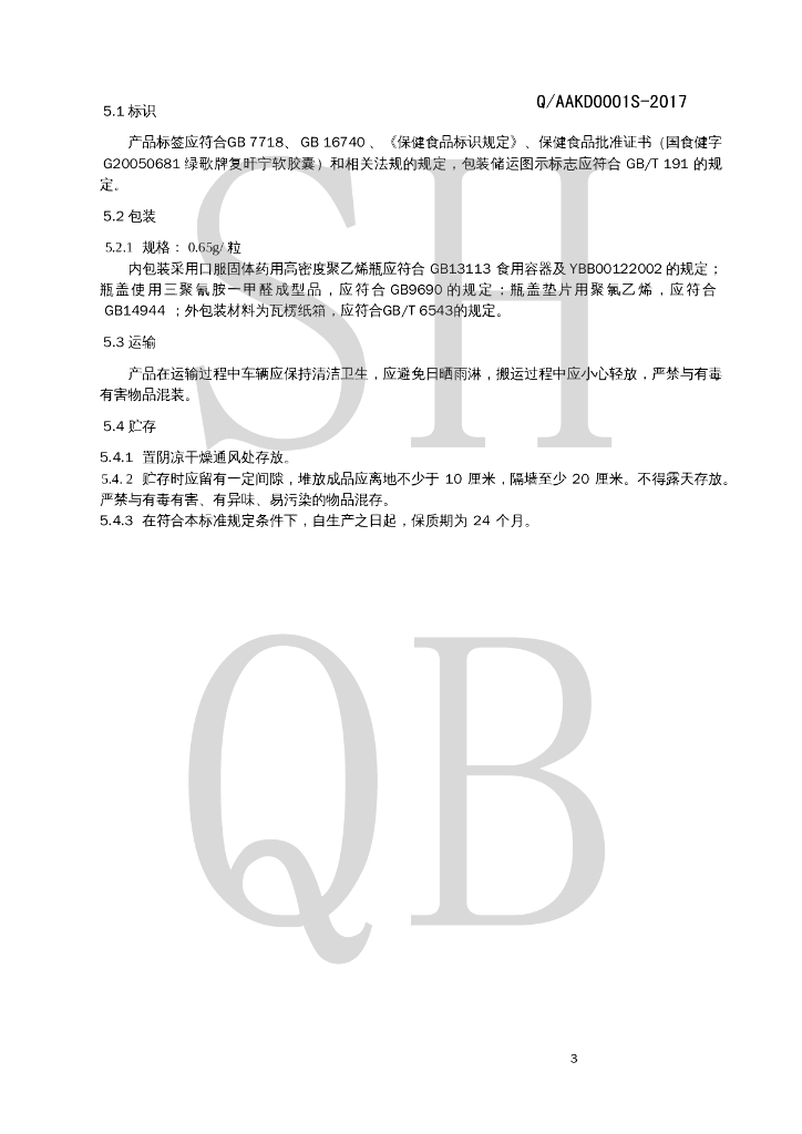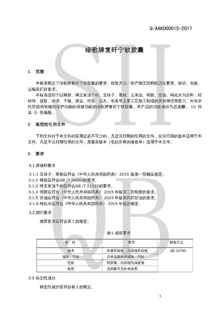 Q/AAKD 0001S-2017 绿歌牌复旰宁软胶囊
