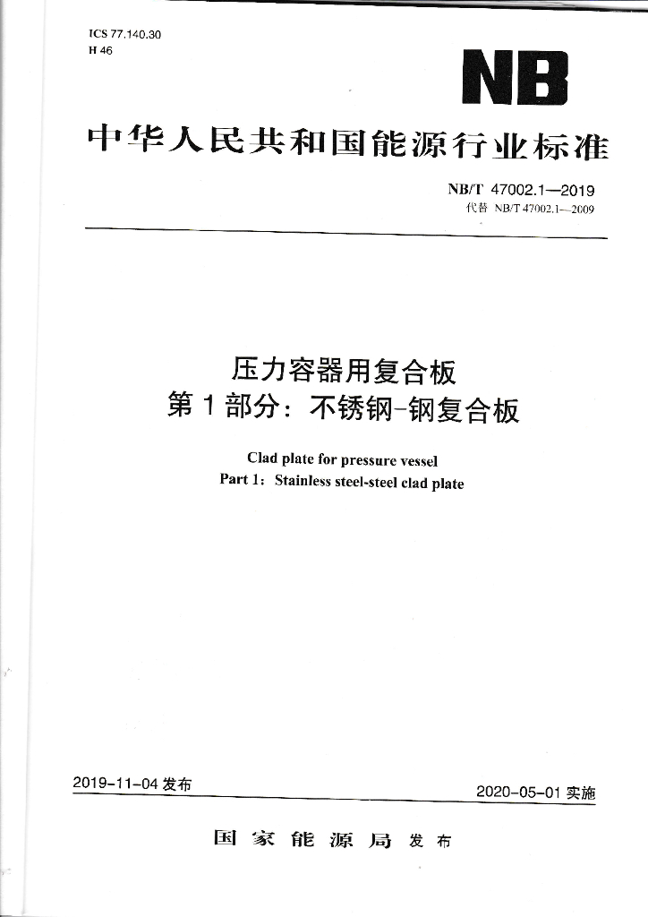 NB/T 47002.1-47002.4-2019 压力容器用复合板
