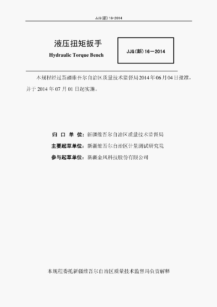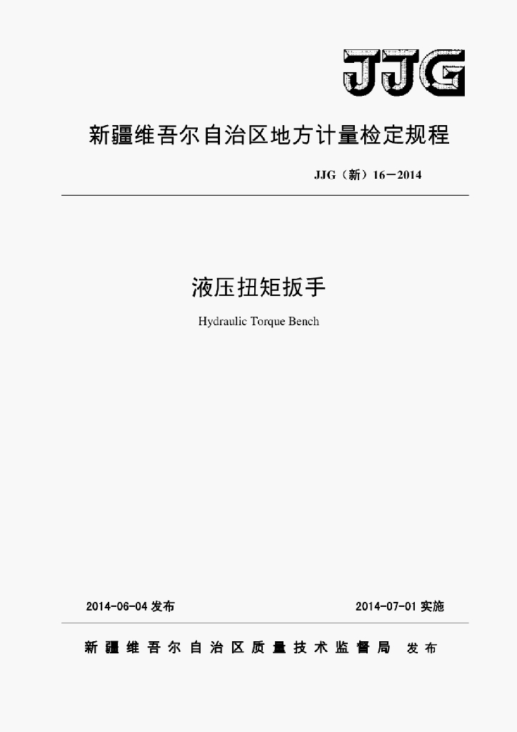 JJG 16-2014 液压扭矩扳手检定规程