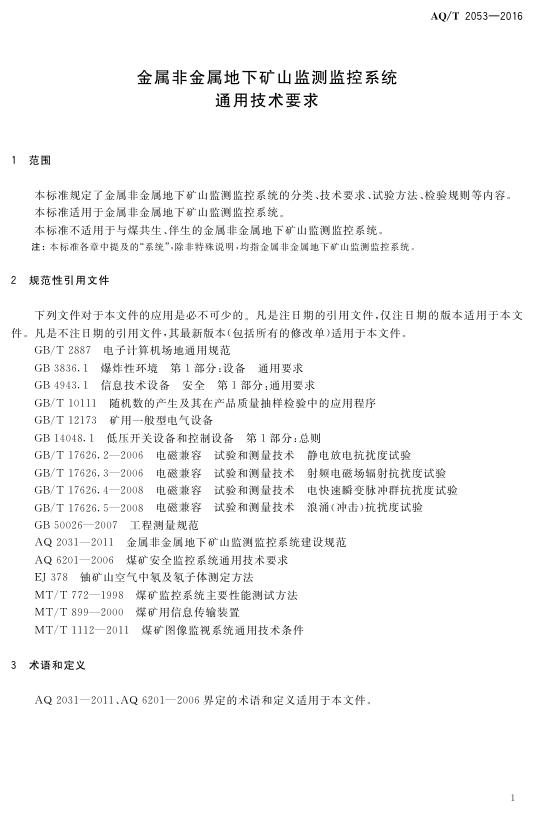 AQ/T 2053-2016 金属非金属地下矿山监测监控系统 通用技术要求