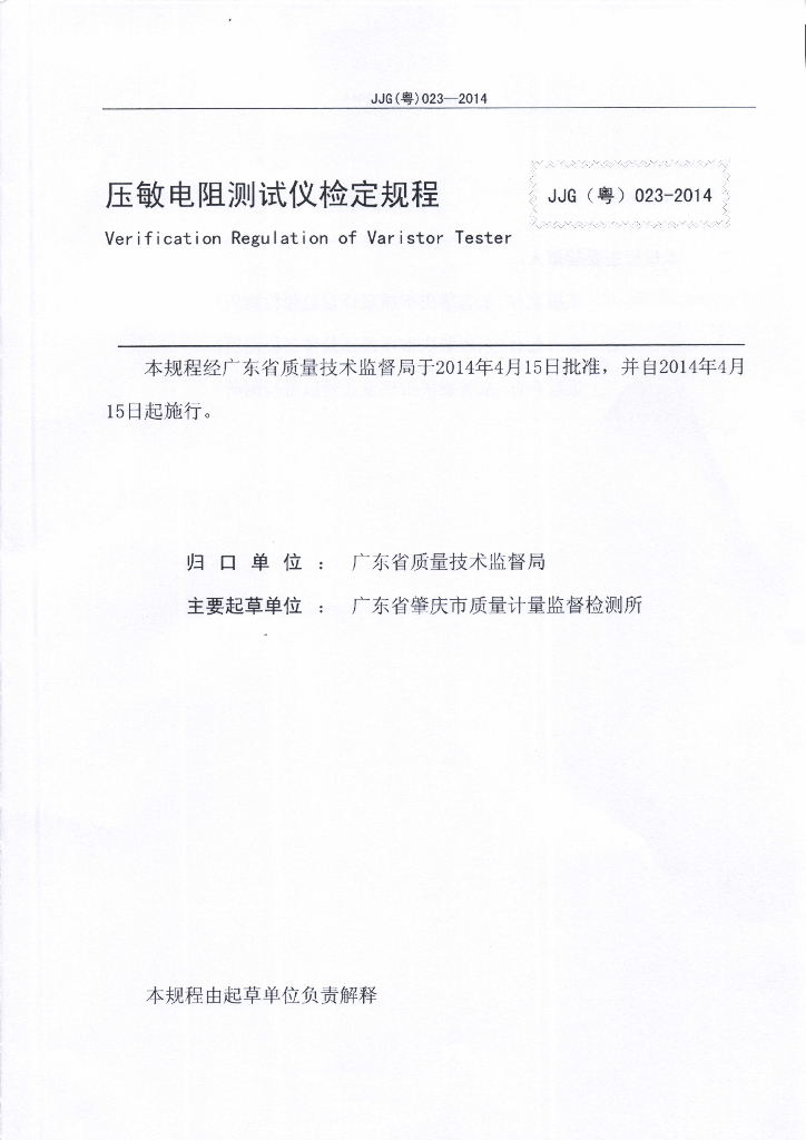 JJG(粤)023-2014 压敏电阻测试仪检定规程