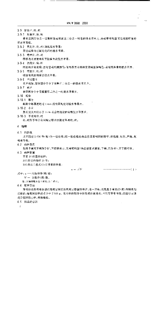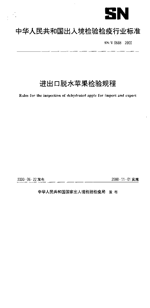 SN/T 0888-2000 进出口脱水苹果检验规程