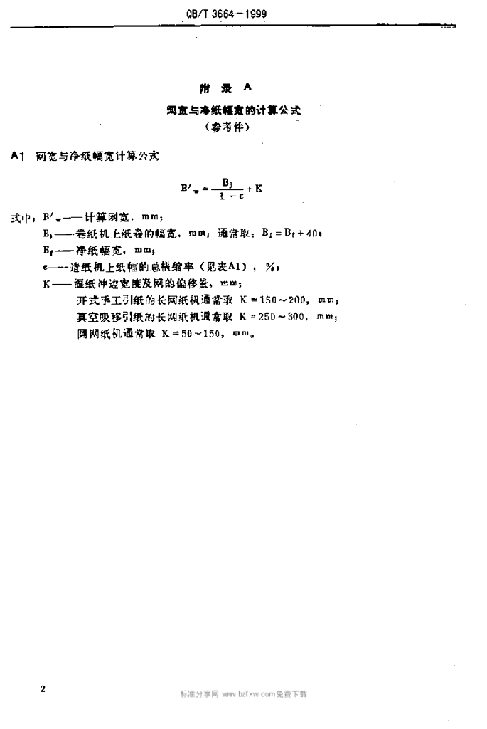 QB/T 3664-1999 造纸机网宽系列尺寸