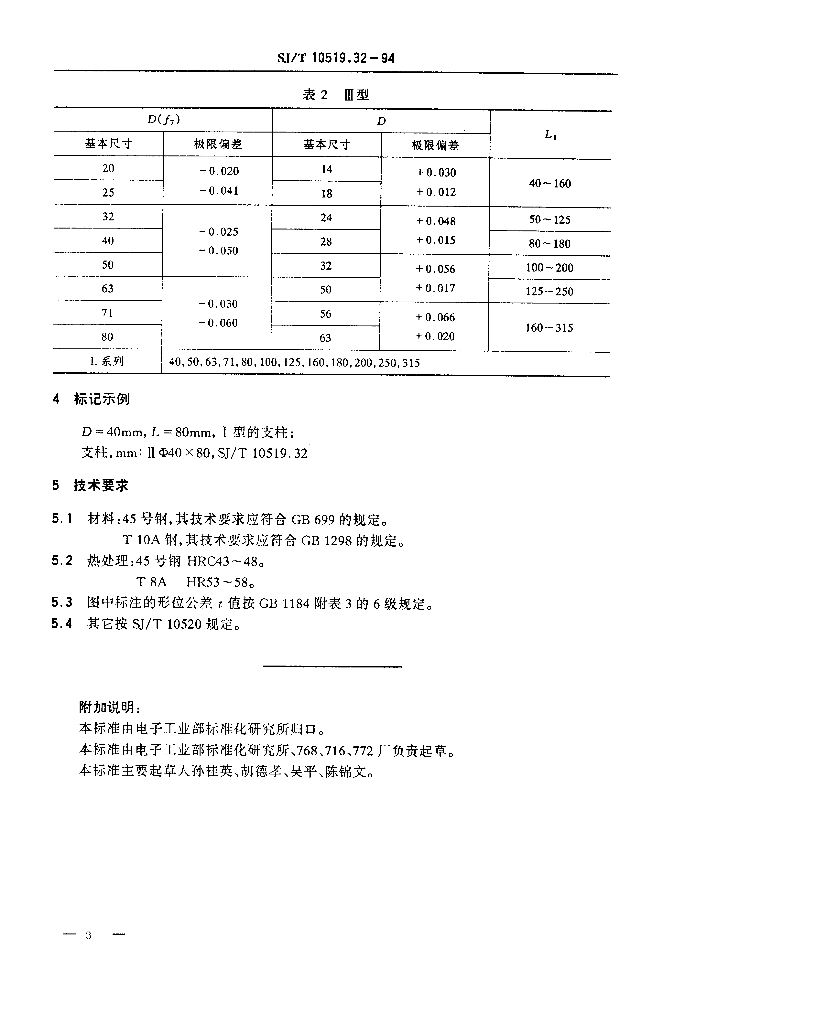 SJ/T 10519.32-1994 塑料注射模零件 支柱