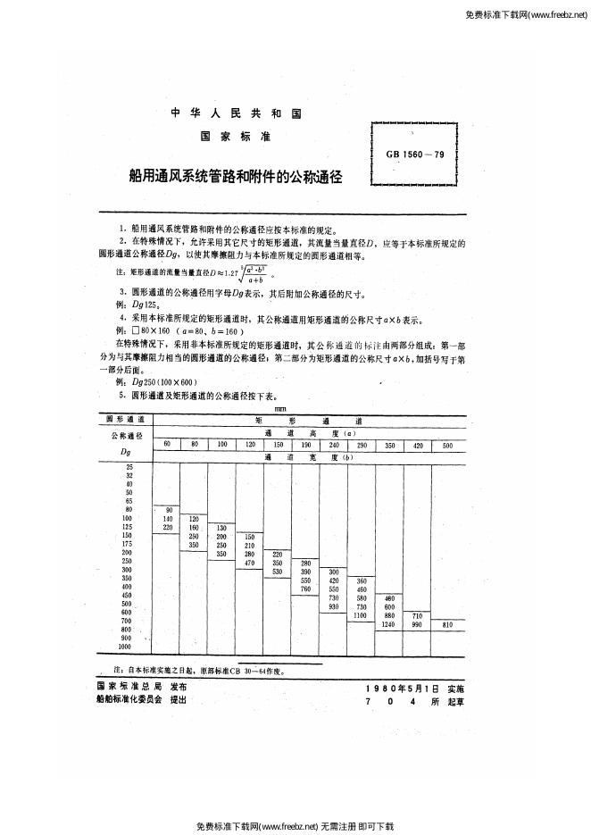 GB/T 1560-1979 船用通风系统管路和附件的公称通径