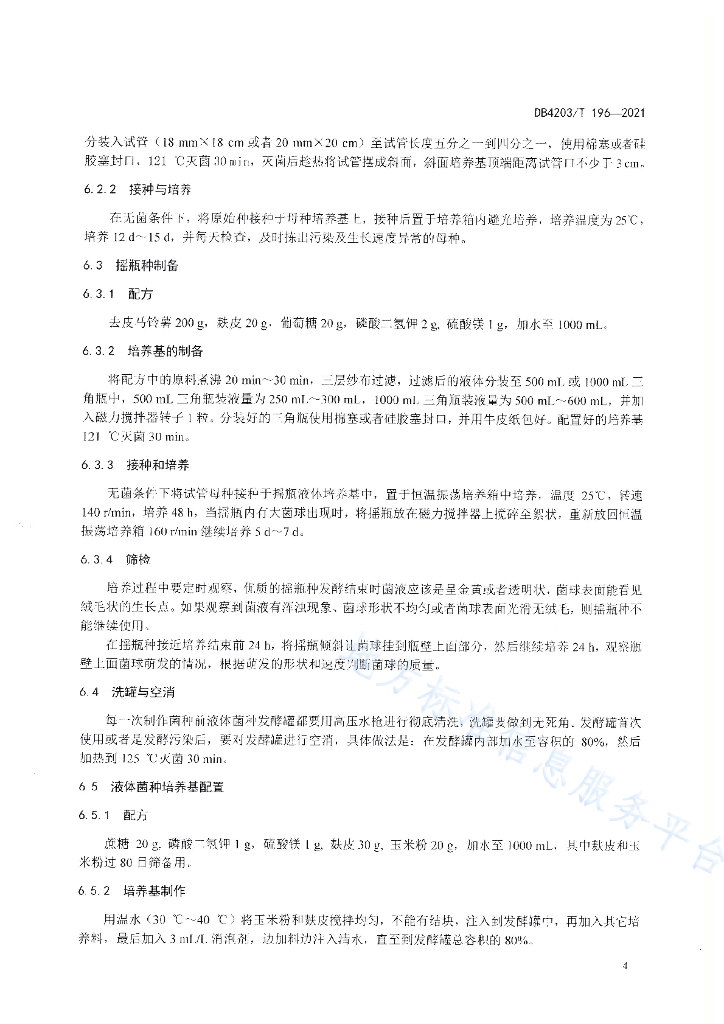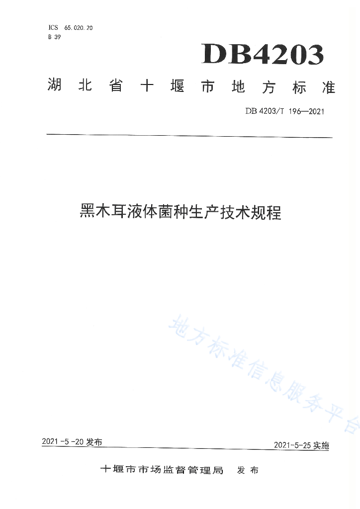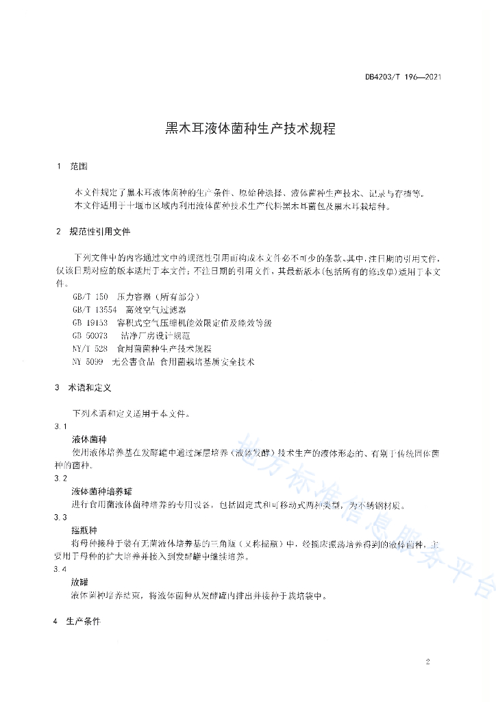 DB4203/T 196-2021 黑木耳液体菌种生产技术规程