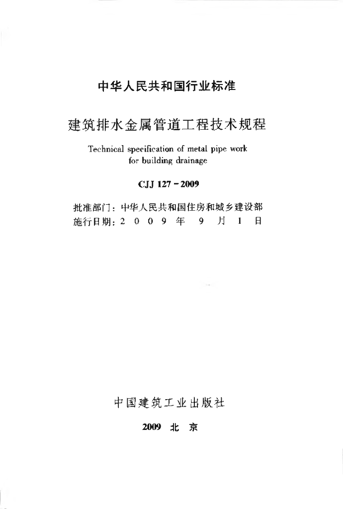 中国金属学会铸铁管分会、建设部科技发展促进中心、北京市建筑设计研究院、中建一局集团第二建筑有限公司、北京柔星管道有限责任公司、山东淄博长河铸管有限责任公司、河南省禹州市新光铸造有限公司、山西泫氏铸业有限公司、天津市凯诺实业有限公司
