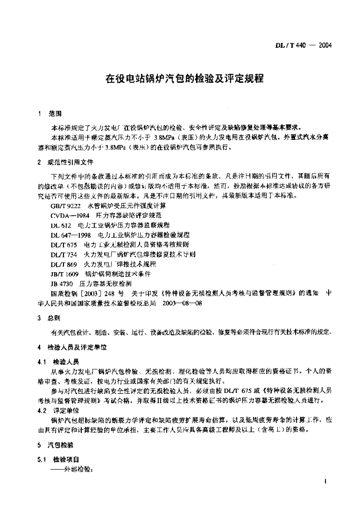 DL/T 440-2004 在役电站锅炉汽包的检验及评定规程