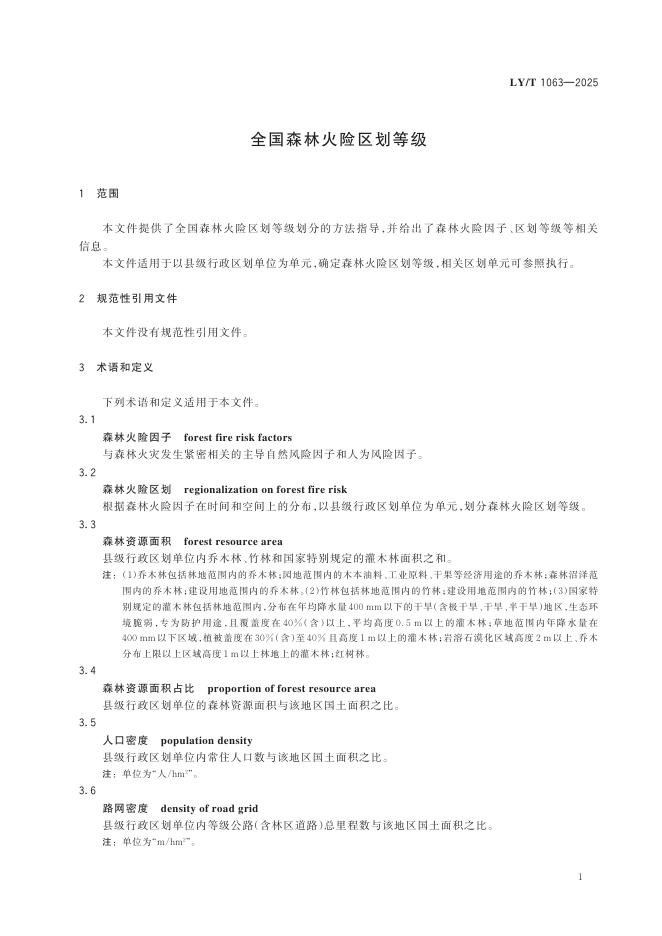 LY/T 1063-2025 全国森林火险区划等级