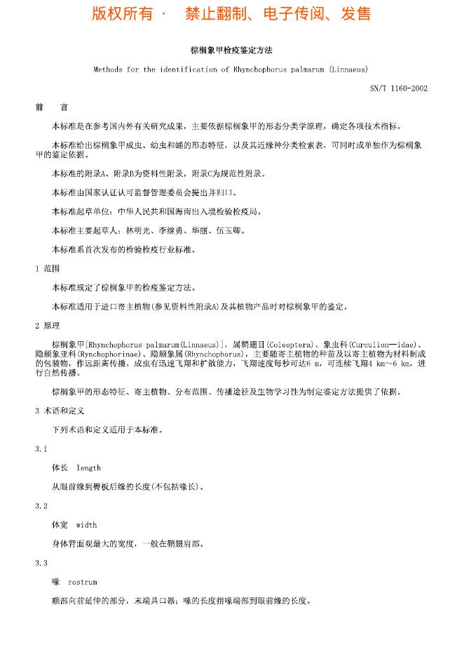 SN/T 1160-2002 棕榈象甲检疫鉴定方法