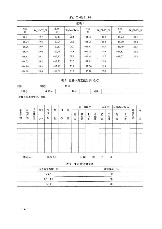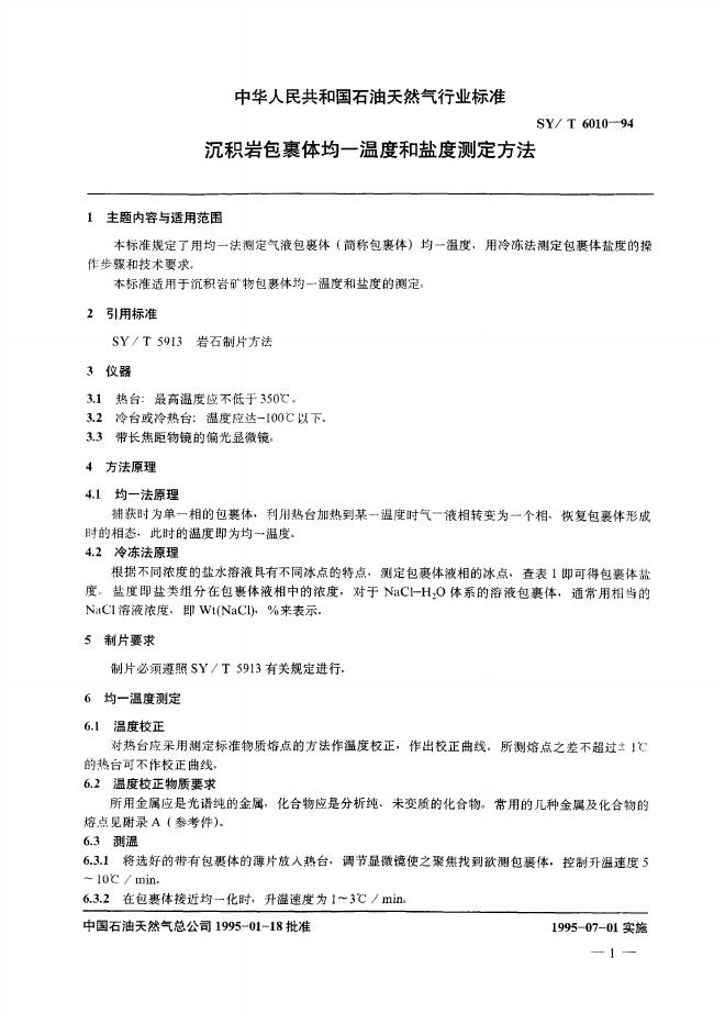 SY/T 6010-1994 沉积岩包裹体均一温度和盐度测定方法