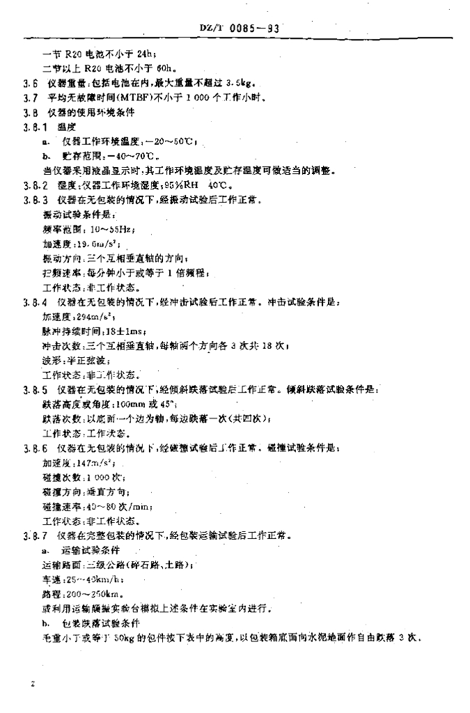 DZ/T 0085-1993 数字 γ 辐射仪通用技术条件