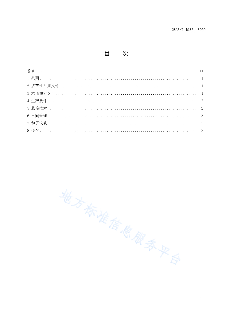 DB52/T 1533-2020 非洲狗尾草种子生产技术规程