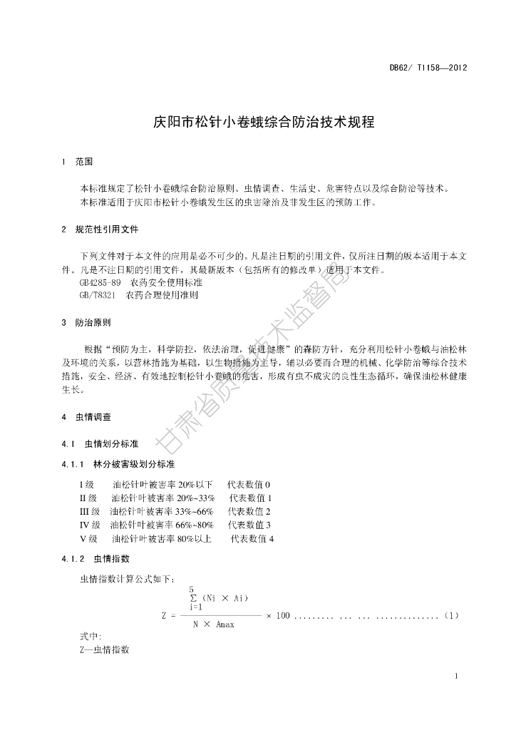 DB62/T 1158-2012 庆阳市松针小卷蛾综合防治技术规程