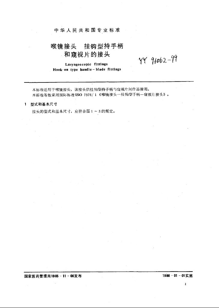 YY 91062~91063-1999 喉镜接头