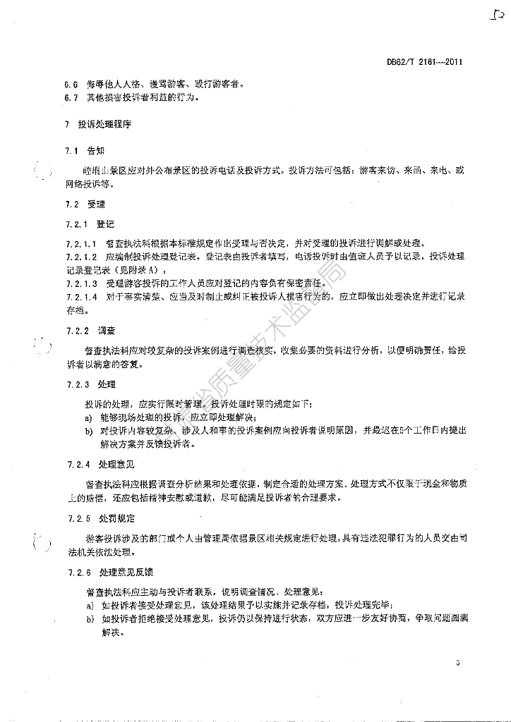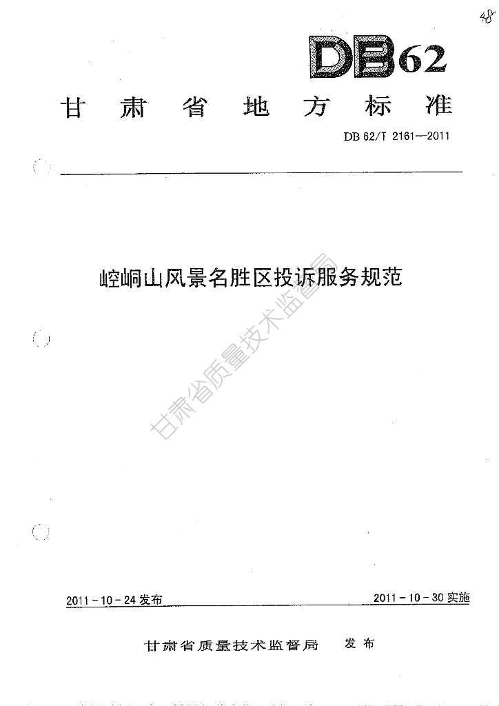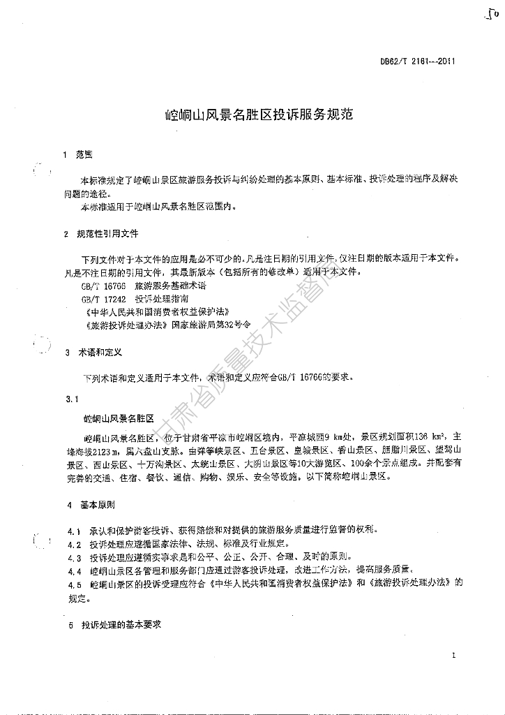 DB62/T 2161-2011 崆峒山风景名胜区投诉服务规范