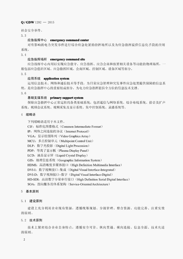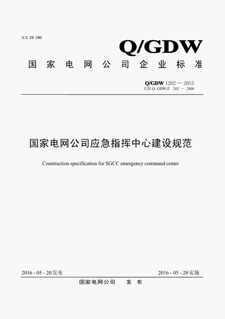 Q/GDW 1202-2015 国家电网公司应急指挥中心建设规范