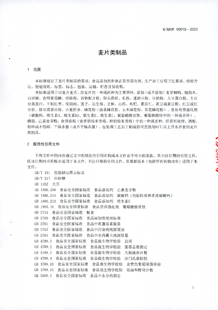 Q/GXDF 0001S-2023 麦片类制品 广西大发食品饮料有限公司