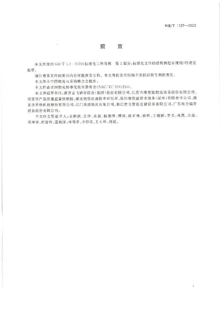 南京音飞储存设备(集团)股份有限公司、江苏六维智能物流装备股份有限公司、南京市产品质量监督检验院、湖北物资流通技术研究所、施坦德质量技术服务(深圳)有限责任公司、湖北普罗格科技股份有限公司、江门英迪物流有限公司、浙江世仓智能仓储设备有限公司、广东海力储存设备股份有限公司